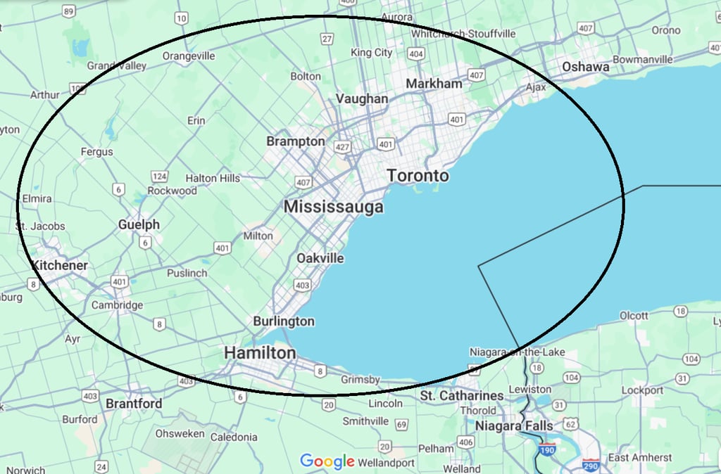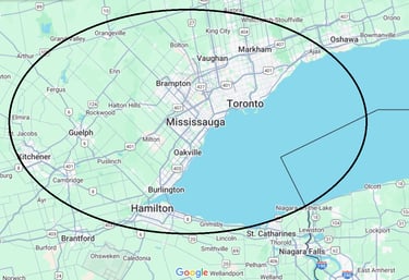 We provide property care services everywhere in the circle below. Covering a large portion of the GTA from Hamilton to Oshawa. If you are wondering whether we service your area, Contact Us