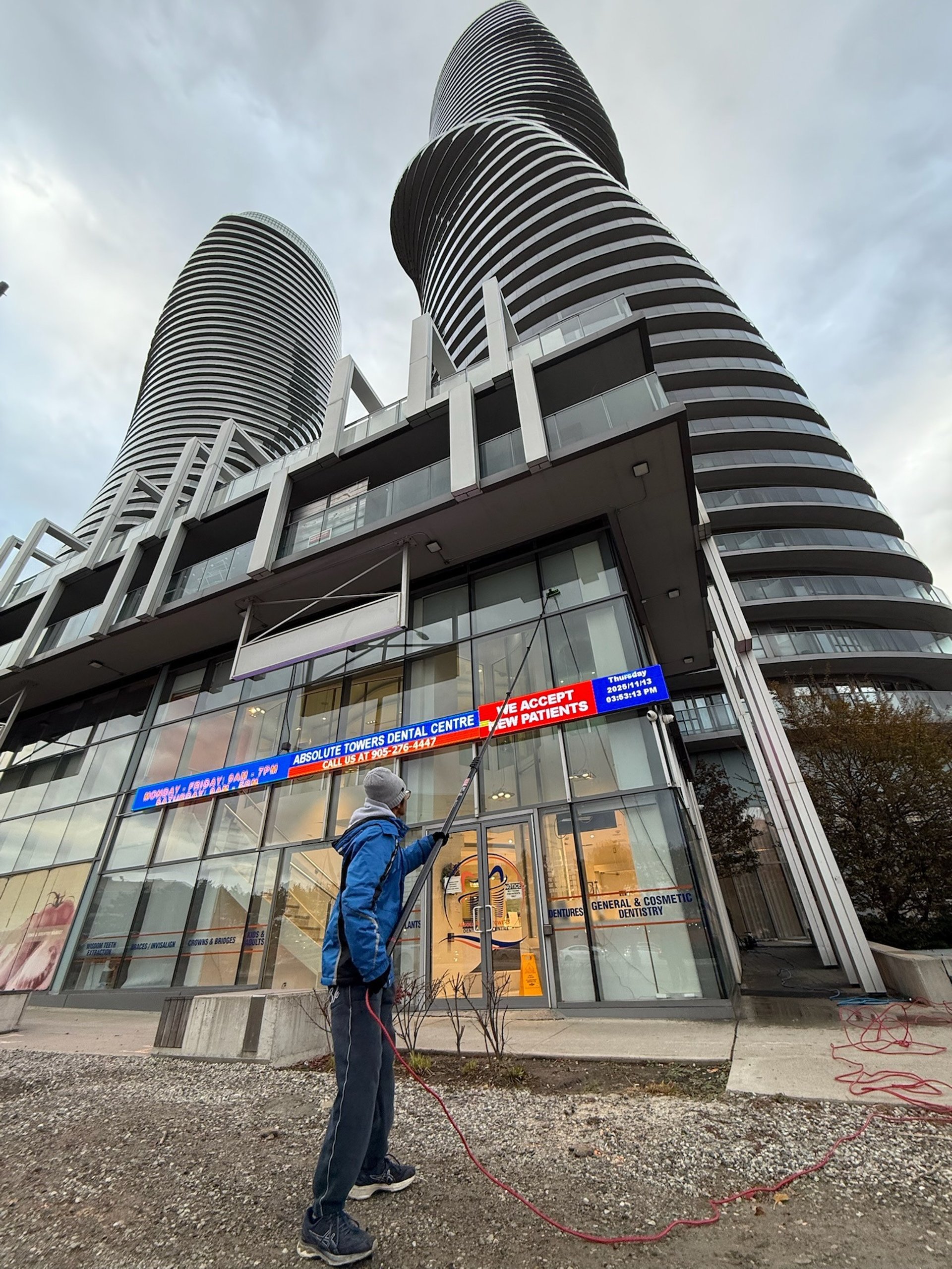 Performed at the iconic Absolute Towers on the Absolute Dental Centre - Provided interior and exterior window cleaning to maintain a clean, bright environment for both patients and staff.