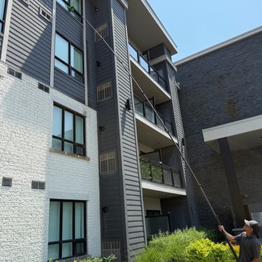 This residential low-rise building needed their windows cleaned. Combining multiple methods to tackle all parts of this project was just another day on the job for the team at Clearest Choice